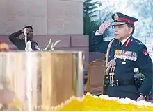 Lt General Vijay Lall, PVSM, AVSM, ADC paying homage at Amar Jawan Jyoti, India Gate(now merged at the National War Memorial) after taking over as Director General Ordnance Services
