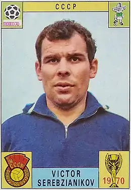 Viktor Petrovich Serebryanikov (Russian: Виктор Петрович Серебряников; Ukrainian: Віктор Петрович Серебряников, 29 March 1940 – 12 November 2014) also spelled Serebryannikov, was a Soviet association football player from Ukraine (at that time Ukrainian SSR). Serebrianikov was a member of the Dynamo's squad that for the first time won the Soviet championship title in 1961 becoming the first non-Moscow team to achieve that feat, so called "the first height".[2]