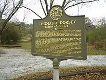 Thomas Andrew Dorsey, composer of over 400 blues and gospel songs, lived here following his birth in Villa Rica on July 1, 1899. At Mt. Prospect Baptist Church he was exposed to shape-note singing and at home learned to play a used pump organ, experiences he said "sprang" his career. The young blues pianist moved to Chicago in 1919 in the Great Migration.