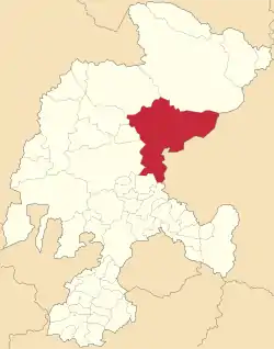 Villa de Cos is one of the 58 municipalities of the Mexican state of Zacatecas. It is located in the center-east of the state, bordered by the municipalities of Mazapil, Francisco R. Murguia, Río Grande, Felipe Pescador, Fresnillo, Panuco and Guadalupe in Zacatecas as well as Santo Domingo and Villa de Ramos in the neighboring state of San Luis Potosí. It has an area of 6,405 km2 occupying 8.53% of state territory. The municipal seat is located in the town of the same name. According to figures from INEGI, in 2010 it had a population of 34.328 inhabitants. Its main economic activity is picking chile and feedlot.