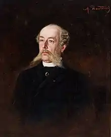 Vilnius Land Bank was approved on 9 August 1872 and began operations in December.[5] It was founded by the same group of people who founded the Vilnius Private Commercial Bank.[6] It was established by the largest landowners in the former Grand Duchy of Lithuania (Peter Wittgenstein, son of Ludwig zu Sayn-Wittgenstein-Berleburg, Nikolay Zubov of Zubov family, Adam Alfred Plater), Russian nobles (Anatoly Baryatinsky, Nikolai Levashov), Russian politicians (Nicolas de Benardaky, Boris Obukhov, Colonel Vladimir Giuliani (Владимир Юрьевич Джулиани), General Pyotr Pavlovich Durnovo), bankers from Saint Petersburg (Joseph Günzburg, Leon Rosenthal, I. Gonzaga-Pavlichinsky (И. Л. Гонзаго-Павличинский)), engineer Konstantin Mikhailovsky, and others.[5][7] The founders raised 1.2 million rubles in capital (down from initial plans of 1.5 million).[5] It was allotted the territory of the Northwestern Krai and Pskov Governorate. It held monopolistic privileges in Vilnius, Kaunas, and Grodno Governorates until 1886 when St. Petersburg – Tula Land Bank was allowed to operate in these territories as well.[5] In the Vitebsk, Minsk and Mogilev Governorates, the bank competed with the Moscow Land Bank.[4]