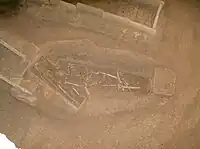 • In February 2019 a discovery of the well preserved grave was announced. The person was 178 cm (70 in) tall and the objects found in the grave include a 92 cm (36 in) long two-bladed sword with bronze hilt, in the, still noticeable, wooden scabbard, large bone comb beneath the left shoulder in the case also made of bones and the iron-made belt across the pelvis. The grave was dated to the period of the Great Migration and, based on the artifacts, it was concluded that the person was member of the Germanic Gepid tribe, which populated the area in the 6th century. So far, 106 Gepid graves were found scattered through Viminicaium, but not in this area so the excavations continued to determine is it an isolated burial site or part of the necropolis. Out of 106, 31 Gepid people had characteristic deformation of the skull, a custom they took from the Huns.[24]