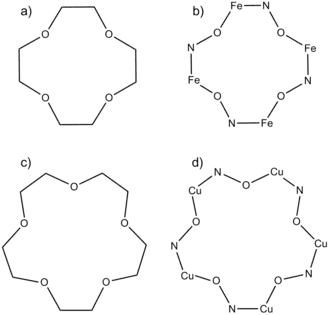 - ↑ Mezei, Gellert; Zaleski, Curtis M.; Pecoraro, Vincent L. (November 2007). "Structural and Functional Evolution of Metallacrowns". Chemical Reviews. 107 (11): 4933–5003. doi:10.1021/cr078200h. PMID 17999555.