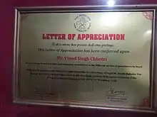 - 1 2 "Handover of Life Time Achievement Award and Condolence Meeting of Mr. Vinod Singh Chhetri" (PDF). Bulletin of Nepal Geological Society. 36: 165–167.