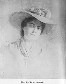 - ↑ One source states that Viola Roseboro' added the apostrophe to her name as an adult, and that at other times in her life she had used the spellings "Roseborough" and "Rosborough";[3] other sources, however, indicate that her father used the apostrophe as well.[6]
