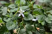 Viola utchinensis is an evergreen with ovate leaves and pale purple to purplish-white flowers.[3][4] Flowers bloom from February to April.[5]