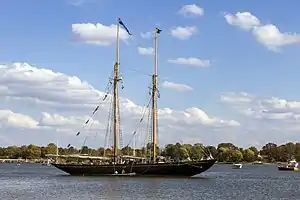 | Sail plan | Two-masted schooner, seven sails: gaff mainsail, gaff foresail, two gaff topsails, fisherman's staysail, staysail, two jibs |