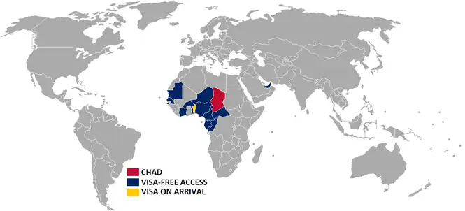 - ↑ Nagraj, Aarti (26 October 2017). "UAE nationals granted visa-free entry to Chad". Gulf Business. Retrieved 10 December 2017.