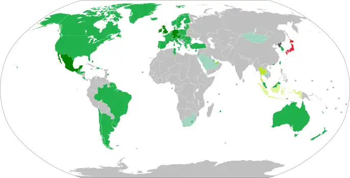 - ↑ "一部旅券査証及び査証料の相互免除並びに一部旅券に対する数次査証の相互付与に関する日本国政府とメキシコ合衆国政府との間の取極(口上書)" (PDF). Ministry of Foreign Affairs of Japan. 21 April 1972. Retrieved 14 February 2018.