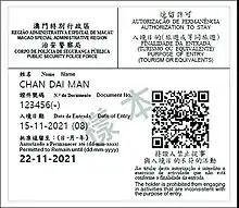 - ↑ Visit Permit for Residents of Macao SAR to Hong Kong SAR