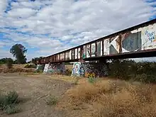 A short segment just northeast of Reedley is still in use by the SJVR, including the ATSF bridge over the Kings River and a spur to the facility at Lacjac.[8]