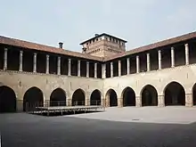 In the 15th century, the Visconti were replaced by the Sforza. Other defensive structures, including two towers, were added to the castle's entrances.[1]