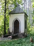 The Visoko estate in the Poljane Valley is part of this settlement. It comprises two large farms, first mentioned in documents as early as the 13th century. The Kalan farm was arranged by the writer and politician Ivan Tavčar into his manor. In his best-known work, The Visoko Chronicles, Tavčar describes events taking place on this estate in the 17th century, when the Kalan family were overlords of the entire valley. There is a bronze statue of the writer by the sculptor Jakob Savinšek close to the manor house. Tavčar is also buried at Visoko.