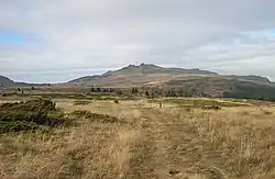Vitosha (Bulgarian: Витоша [ˈvitoʃɐ]), the ancient Scomius or Scombrus,[1] is a mountain massif, on the outskirts of Sofia, the capital of Bulgaria. Vitosha is one of the symbols of Sofia and the closest site for hiking, alpinism and skiing. Convenient bus lines and rope ways render the mountain easily accessible. Vitosha has the outlines of an enormous dome. The territory of the mountain includes Vitosha nature park that encompasses the best known and most frequently visited parts. The foothills of Vitosha shelter resort quarters of Sofia; Knyazhevo quarter has mineral springs. Vitosha is the oldest nature park in the Balkans. The mountain emerged as a result of volcanic activity and has been subsequently shaped by the slow folding of the granite rock layers and a series of gradual uplifts of the area. It appears dome shaped at first sight, but the mountain, 19 km long by 17 km wide, actually consists of concentric denudational plateaus rising in tiers one above the other. Vitosha is separated into four main parts whose main ridges gather at a crown known as Cherni Vrah ('Black Peak', Bulgarian: черни връх). This is the highest point of the mountain at 2290 m and is one of 12 peaks of Vitosha over 2000 m in height. It is the highest massif of Srednogorie mountain chain system, together with Sredna gora, Plana (mountain), Lyulin Mountain, Greben (mountain), Viskyar Mountain, etc. They all are a result of the folding of the earth layers through the Mesozoic, causing also magma sheet-like intrusion (or concordant pluton) that has been injected between layers of sedimentary rock. The laccolithic domed form of Vitosha is a typical example.