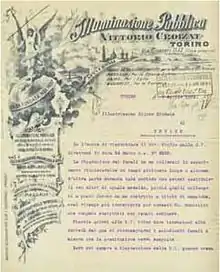 Croizat worked as an engineer in Turin,[3] specializing in electric and gas lighting. He obtained multiple patents (in Germany and the United States, at a minimum) for gas lighting and heat exchange apparatuses.[4][5][6][7] He published articles regarding industrial uses of acetylene,[8] Scattered evidence of his work in public lighting indicates that he worked in Constanta, Romania,[9] and on a design for a lighthouse oil lamp at Cape Guardafui in Somalia.[10]