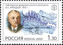 Arkadiev was born in Moscow. While still a young boy, his father died and his mother worked in a library leading to an early interest in studies. While still at high school he met Nikolay Umov and became interested in physics. He joined Moscow State University in 1904 and studied ferromagnetism under fields under Pyotr Lebedev. Arkadiev's studies were interrupted by political troubles, quitting in 1911 to protest the administration of Lev Kasso. He specialized in ferromagnetism and discovered ferromagnetic resonance in 1913. After the October Revolution, he returned to Moscow University to establish a laboratory where he worked until the end of his life. Along with his wife and fellow-researcher Alexandra Glagoleva-Arkadieva[2] he worked on electromagnetic wave spectroscopy in 1922-24.[3][4] He became an associate member of the Academy of Sciences of the Soviet Union in 1927.