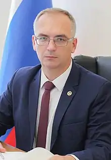 Vladimir Anatoliyevich Bidyovka (Ukrainian: Володимир Анатолійович Бідьовка, Russian: Владимир Анатольевич Бидёвка; born 7 March 1981) is a politician from the Donbas region, who served as Chairman of the People's Council of the Donetsk People's Republic (DPR) from 2018 to 2023.[1] Prior to the conflict in the east Ukraine region, after which he supported DPR independence, he served as a lawmaker in the Ukrainian Verkhovna Rada between 2012 and 2014.