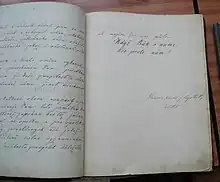 Registration of Vladimir Logothetti in Czech on the first sides of the journal of the Voluntary Fire Brigade of Bílovice