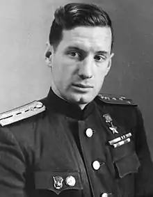 Vladimir Nikolaevich Pchelintsev (Russian: Владимир Николаевич Пчелинцев; 30 August 1919 – 27 July 1997) was a Soviet sniper during World War II. Awarded the title Hero of the Soviet Union in 1942 for killing 152 enemy soldiers, he took part in a Soviet delegation with Lyudmila Pavlichenko to the United States. In one of his memoirs he claimed to have a tally of 456 enemy soldiers killed, although most historians believe the tally is around 152 kills.