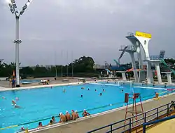 Šalata is known for ŠRC Šalata, the Sports and Recreational Center Šalata. ŠRC Šalata was built in the 1930s instead of expanding the existing Šalata hospital (KBC Šalata).[30] It contains large public swimming pools, tennis courts, basketball courts, and an outdoor soccer stadium that converts to an ice rink in the winter. The center attracts both amateur and professional tennis players with its one regular size and eight smaller tennis courts. Four of these courts are covered during the winter and all are regularly lit during the evening.[31] ŠRC Šalata is the home of Športsko društvo Medveščak, the association of 15 sport clubs based in ŠRC Šalata, most notable being ice hockey, basketball, swimming, handball, water polo and tennis clubs, all named Medveščak.[32][33] Aside from the pools and courts, the center is equipped with a gym and a fitness club.[34]