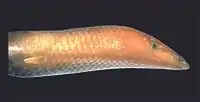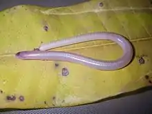 The type series consists of two specimens that measured 67–71 mm (2.6–2.8 in) in snout–vent length. The body is about 4 mm (0.16 in) wide at midbody. In preserved specimens, body is entirely pale with eyes visible as dark spots. Colour is assumed to be pinkish in live animals.[1]