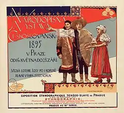 Hynais created the first poster for the General Land Centennial Exhibition of 1891,[3] using distinctively Czech symbols prominently in the design;[11] the poster would earn him recognition.[12] Tomáš Masaryk, the President of Czechoslovakia, sat for him ninety-four times.[13] In 1894, his work won a medal, first class, at the Antwerp World's Fair.[14]
