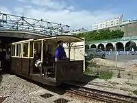 In 2014, it was announced that the railway had been awarded a grant of £1.6 million by the Heritage Lottery Fund, a sum which had to be spent by March 2017. The work funded included: the provision of a new visitor centre and ticket office at the Aquarium station; a new five-road depot (4 stock roads and one through running line) with engineering facilities, inspection pit, and public viewing gallery at Halfway; the restoration of cars 4, 6, and 10 from a semi-derelict state to full working order; and the provision of new educational materials about the railway.[6]