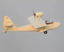 The VJ-22 is a high-winged monoplane, using the wings from an Aeronca Champion or Chief, with a new flying boat hull of mahogany plywood, waterproofed with fiberglass cloth.[3] The aircraft's single engine, normally a pusher of between 85 hp (63 kW) and 100 hp (75 kW), is mounted on pylons above the wing centre section. The engine can also be mounted in tractor configuration and engines of up to 135 hp (101 kW) have been used successfully. A retractable tailwheel undercarriage is provided. The pilot and passenger sit side by side under an enclosed canopy, and are provided with dual controls.[1][2][4]
