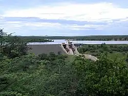 The Von Bach Dam (originally the Sartorius von Bach Dam) is a rock-fill embankment dam on the Swakop River near Okahandja in the Otjozondjupa Region of Namibia. Built in 1968 and commissioned in 1970, the dam provides Namibia's capital of Windhoek with much of the city's water.[3] It also supplies Okahandja.[4] The dam has a capacity of 48.56 million cubic metres (63,510,000 cu yd).[5] Water from the reservoir is sent directly to a water treatment plant downstream. The treatment plant was completed in 1971 and upgraded in 1997.[6]