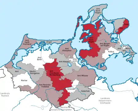 Vorpommern-Rügen District was established by merging the former districts of Nordvorpommern and Rügen; along with the former district-free city of Stralsund as part of the local government reform of September 2011.[2] The name of the district was decided by referendum on 4 September 2011.[3] The project name for the district was Nordvorpommern.