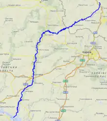 The Vorskla (Russian: Ворскла; Ukrainian: Ворскла) is a river that runs from Belgorod Oblast in Russia southwards into northeastern Ukraine, where it joins the Dnieper. It has a length of 464 kilometres (288 mi), and a basin area of 14,700 square kilometres (5,700 sq mi).[1] Right tributaries of the river include the Vorsklytsia and Boromlia , and left tributaries Merla, Kolomak and Tahamlyk.