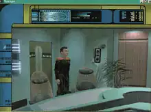 Voyager began development in 1995,[2] and it was announced in August of that year as the first game in a multi-title deal between Viacom New Media and Looking Glass Technologies.[3] According to Next Generation, the announcement was "greeted with joy" by gamers and fans of Star Trek.[4] Viacom was interested in Looking Glass's engine technology, and took a minority equity investment in the company.[5] Voyager was conceptualized by Dickens and by Viacom producer Rachel Leventhal.[1] It was initially planned for release in 1996,[3] but a later report gave it an expected release date of early 1997. The team at Looking Glass visited and researched the set of Star Trek: Voyager in order to reproduce it accurately, and they created 3D laser scans of the cast's heads.[1] Voice over from the cast was also recorded.[6] The game's characters and pre-rendered backgrounds were created with 3D Studio and Alias, and the characters were animated with the skeletal animation system that had been developed for Terra Nova: Strike Force Centauri.[1] Designer Jonathan Chey worked on the game's physics and artificial intelligence code, which he later said were "really weird" features for an adventure game and evidence of unfocused development.[7] During the game's showing at the 1996 Electronic Entertainment Expo (E3) in June, a writer for Computer Games Strategy Plus called it "one of the most highly anticipated projects currently floating around the game world."[8]