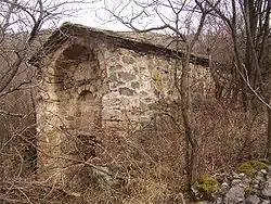 - Church of St Nicholas. It is situated at 2 km to the south of the village in a deep and hardly accessed dingle. It is a small one nave and one apse church without narthex and with a shallow arc on the western facade. Its dimensions are 4,43 x 2,75 m. The vault is semi-cylindrical. It was built of stones and white plaster. The roof is covered with stone plates. The church is half-dig in the ground. The whole interior and the arc on the western facade are painted but only fragments of the frescoes have remained. The church was constructed and painted in the 16th century. It is a monument of culture.