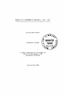 - ↑ Ormrod, W.M. (1984). Edward III's government of England, c.1346–1356 (DPhil). University of Oxford.