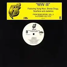 "WW III" (pronounced "world war three") is a song by American hip hop collective and record label Ruff Ryders and promotional single from their second compilation album Ryde or Die Vol. 2 (2000). It features American rappers Snoop Dogg, Scarface, Jadakiss and Yung Wun. The song was produced by Swizz Beatz.