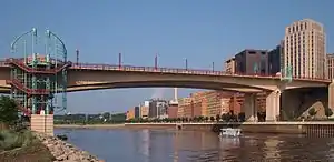 ![]() Northern spans of the Wabasha Street Bridge from Raspberry Island | |