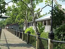 Waccamaw River Warehouse Historic District is a national historic district located at Conway in Horry County, South Carolina.[2] It includes three contributing buildings: a steamer terminal (ca. 1880), warehouse (ca. 1890), and tobacco warehouse (ca. 1900). These buildings illustrate the evolution of utilitarian structures at the end of the 19th century, documenting the shift from heavy-timber braced-frame structural members to smaller-member, balloon framing with multiple diagonal bracing and the use of a clerestory for additional light. They are the last extant warehouses in Conway associated with the commercial trade on the Waccamaw River.[3]