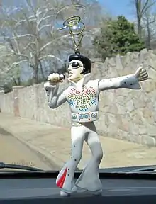 Wackel-Elvis (German pronunciation: [ˈvakəlˈɛlvɪs], "Wobbly Elvis") is a 6 inches (15 cm) tall, hanging dashboard figure designed to resemble musician and actor Elvis Presley. A prototype of the figure was first introduced by the German automobile manufacturer Audi in a series of television commercials which were broadcast in several European countries. The commercials were produced by the advertising agency Saatchi & Saatchi in 2001 to promote Audi's new continuously variable "multitronic" transmission. Due to a high demand by Elvis fans after publication of the commercials, 15,000 Wackel-Elvis figures were produced and sold at the Audi factory outlet store.
