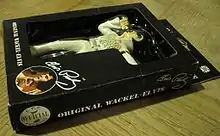 The Audi commercials featured a prototypical Wackel-Elvis, initially intended for use in the television commercials only.[1] Unlike the eventual commercial dashboard figure, the Wackel-Elvis featured in the Audi commercials was presented with blonde hair and wearing a golden jumpsuit; the prototype was designed with more pronounced bow legs than the commercial product.[3][4][5] Due to high demand of viewers after the spots aired in several European countries, an initial production run of 15,000 figures was sold out quickly. Another 150,000 Wackel-Elvis dashboard figures were mass-produced in China to satisfy the high demand for the product. In 2001, Wackel-Elvis was sold for DEM 15.60 (EUR 7.98 or ca. USD 11.00) in the Audi factory outlet store in Ingolstadt, Germany.[1]