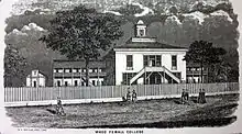 Waco Female College received a charter in 1854 and began operations in September 1857, initially under the supervision of a local pastor, Franklin Collett Wilkes. William McKendree Lambden became its first president,[1] followed by Pinckney Downs and in 1859 by Ferdinand Plummer Maddin, who was also the county tax assessor and collector and served as president for ten years. Samuel Pascal Wright became president in the late 1870s.[2] The Texas legislature granted the college another charter on February 11, 1860, as a non-sectarian institution consolidating Waco Female Seminary and Waco Female Academy; it may also have been initially known as Waco Union Female Institute, which was chartered on February 16, 1858.[3]