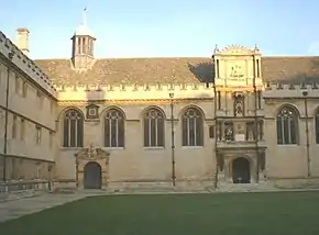 The clock was made by Joseph Knibb in 1670 and installed in the college in 1671.[2] The clock face is still in its original location over the west door of the college chapel. The 1670 clock mechanism is now kept in the History of Science Museum, Oxford.