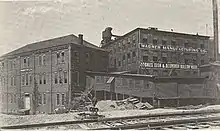 The Wagner Manufacturing Company was founded by the brothers Milton M. and Bernard P. Wagner in Sidney, Shelby County, Ohio.[1] The architect Joseph Altenbach started construction of the Wagner manufacturing complex in 1890. He was a friend of the family head Mathias Wagner, and was responsible for many of the major buildings in Sidney during that period.[2] The company was incorporated in 1891. The principal owners were Bernard, Milton, Louis, and William Wagner.[3] The brothers were joined by R.O. Bingham, who had in the past worked at the Marion Stove Works and the Sidney Manufacturing Company, who became superintendent of the company.[1]