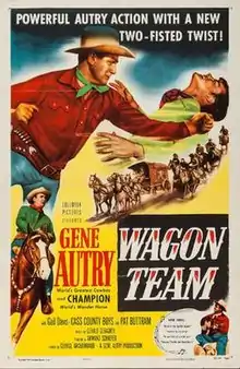 Wagon Team is a 1952 American Western film directed by George Archainbaud and written by Gerald Geraghty. The film stars Gene Autry, Gail Davis, Dick Jones, Gordon Jones, Harry Harvey Sr. and Henry Rowland. The film was released on September 30, 1952, by Columbia Pictures.[1][2][3]
