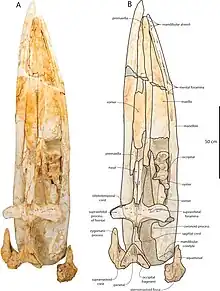 Waharoa ruwhenua had a rostrum that was less flexible than those of modern edentulous mysticetes, yet much more flexible than the rostra of toothed mysticetes.[1] This intermediate flexibility suggests that W. ruwhenua harbored the most primitive form of a kinetic rostrum in the Mysticeti.
