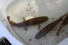A particularly large eel weighing almost 11 kilograms (25 lb) was caught in the stream in 1876.[15] The Acclimatisation Society liberated perch into the Waiwhetū Stream in 1913.[16] An unusual catch was made in 1924 with the capture of a lamprey in the stream.[17]