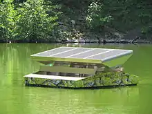 Thereafter the leaseholders of the lake, Sinzheim Sports Fishing Club, with financial support from the municipality of Sinzheim 2014,[5] installed a solar-powered circulator pump, which pumps water from the lakebed to the surface.