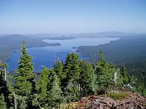 Waldo Lake is a natural alpine lake in the Cascade Mountains of the U.S. state of Oregon. It is the second largest natural non-alkali lake in Oregon with just under 10 square miles (26 km2) of water surface and a maximum depth of 420 feet (130 m). The lake is named after Oregon politician, judge, and conservationist John B. Waldo.[2]