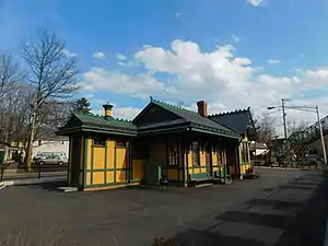This station did not open along with the rest of the Paterson and Ramapo Railroad on October 19, 1848.[7][8] The Erie Railroad, who took over that railroad, established a stop at Waldwick c.1886. A wooden station depot was built on the east side of the tracks at that point. The historic original station house has been listed in the state and federal registers of historic places since 1978 and is part of the Operating Passenger Railroad Stations Thematic Resource.[9][10] The Waldwick Community Alliance[11] has leased the building for 25 years until 2034. After years of being in disrepair, it has been restored and now houses the Waldwick Museum of Local History.[12][13][14][15]