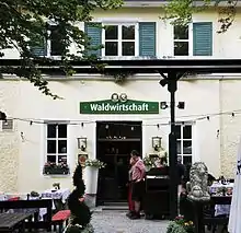 The Waldwirtschaft is a tavern with a large beer garden just south of Munich. It is situated in the municipality of Pullach in the ward of Großhesselohe on the high bank (fluvial terrace) of the Isar. Sepp Krätz has been the publican since 1981, and has run the Hippodrome Festival Tent at the Oktoberfest from 1995 to 2014.