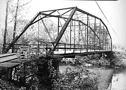 The Wallace Bridge, also known as the Nimrod Bridge, is a historic bridge in rural Perry County, Arkansas. It is located southeast of the hamlet of Nimrod, carrying County Road 18 (Wallace Bridge Road) across the Fourche La Fave River. It is a single-span camelback through truss structure, set on concrete abutments. The bridge has a truss length of 180 feet (55 m) and a roadway width of 15 feet (4.6 m) (one lane). The bridge was built in 1908, its trusses constructed by the Southwestern Bridge Company. At the time of its listing on the National Register of Historic Places in 2008, it was one of three surviving camelback truss bridges in the state.[1][2]